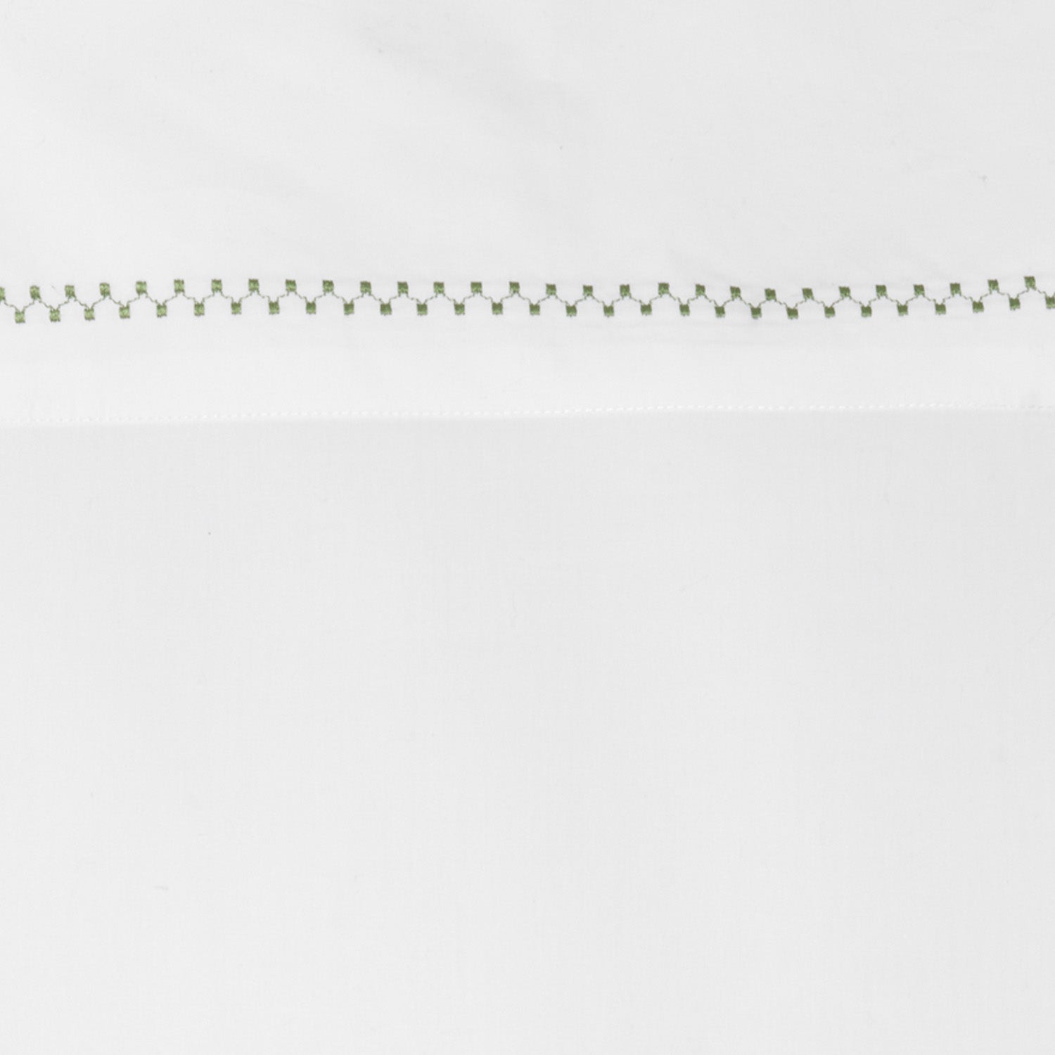 We enlarged one of our hand-embroidered designs in sage to create a subtle, playful pattern. Crafted from organic percale cotton sourced from the southernmost depths of India, this sheet set boasts 100% long-staple fibers for a luxurious feel. Order a swatch. 300 thread count 100% organic cotton percale Hand embroidery on sheets and cases Euros are sold individually Euro insert is available here Twin: 1 flat sheet, 1 fitted sheet, 1 standard pillow case Queen: 1 flat sheet, 1 fitted sheet, 2 standard pillow cases King: 1 flat sheet, 1 fitted sheet, 2 king pillow cases Made in India Size Guide Machine wash cold, separately, delicate cycle. Tumble dry low. Do not bleach. Iron at medium setting if necessary.