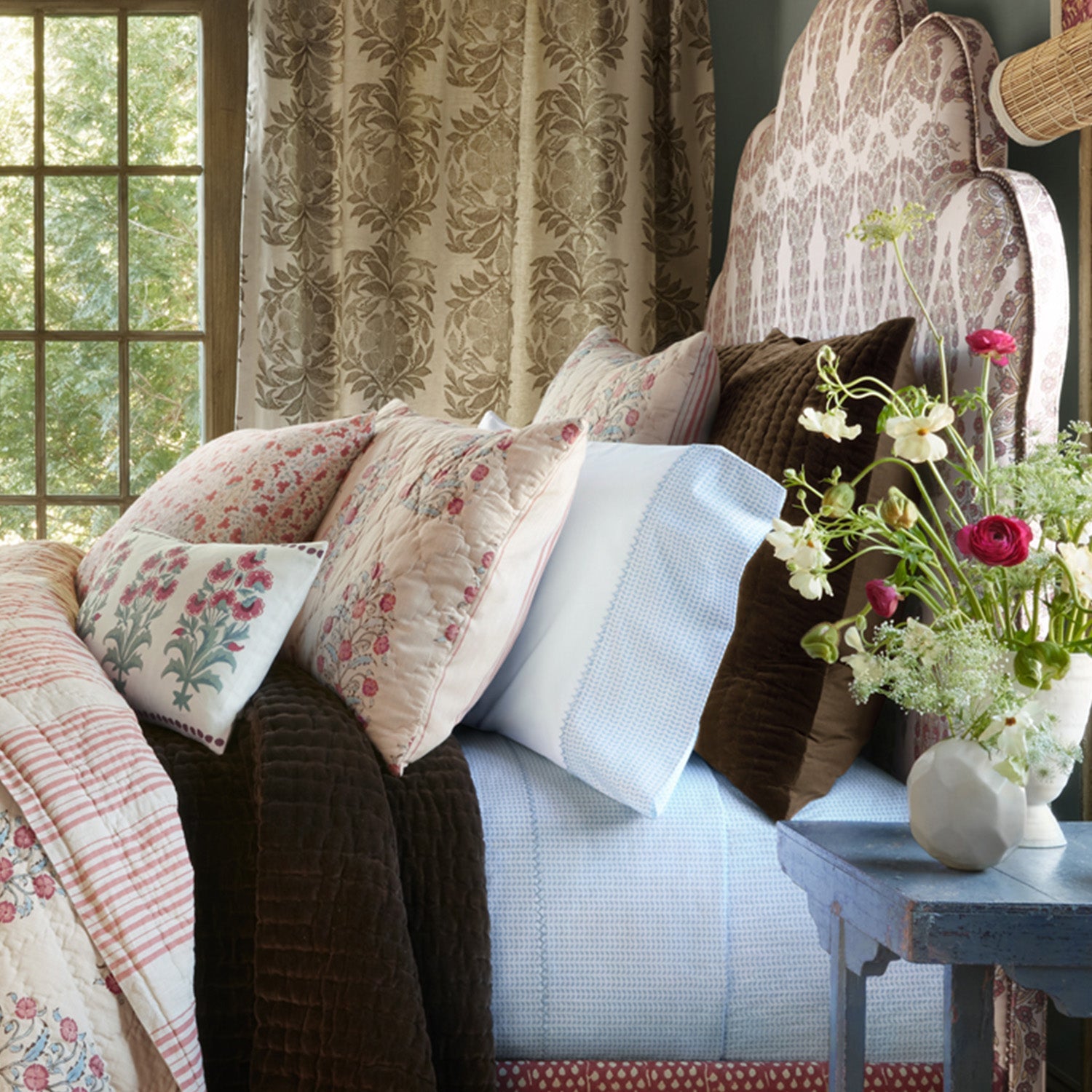 Add a hint of playful print. Featuring our selling Cinde print on just the cuff. 100% organic cotton percale 200 thread count Hand embroidery on sheets and cases Made in India Size Guide Machine wash cold, separately, delicate cycle. Tumble dry low. Do not bleach. Iron at medium setting if necessary.