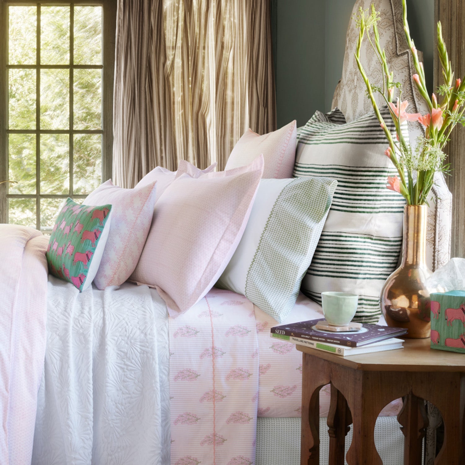 Add a hint of playful print. Featuring our selling Cinde print on just the cuff. 100% organic cotton percale 200 thread count Hand embroidery on sheets and cases Made in India Size Guide Machine wash cold, separately, delicate cycle. Tumble dry low. Do not bleach. Iron at medium setting if necessary.