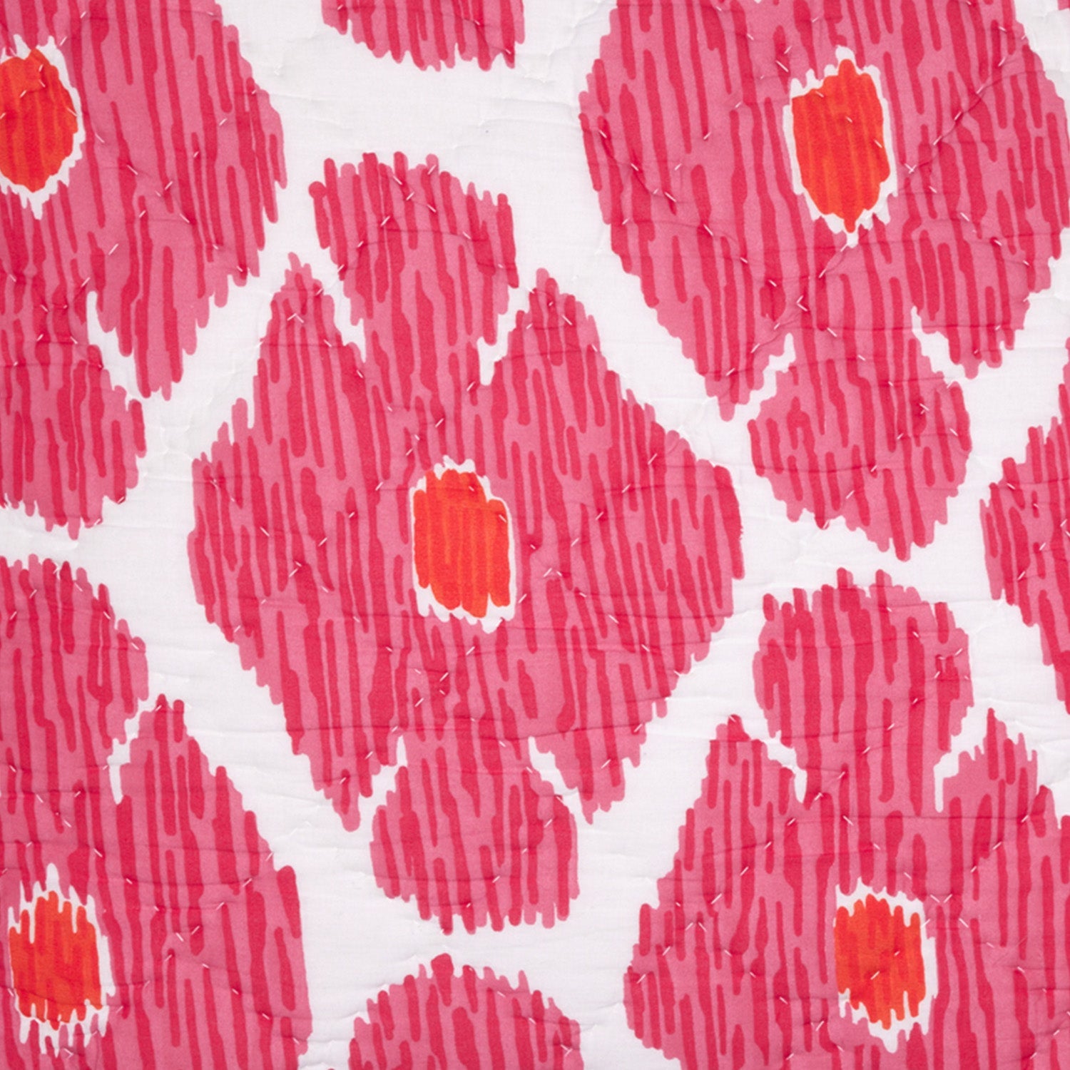 John found this much loved poppy ikat print when going through the archives. Our latest collection was the time to bring back this colorful hit. Order a swatch. 100% cotton voile Hand quilted Coordinating pattern on back Made in India Size Guide Machine wash cold with similar colors. Tumble dry low. Do not bleach, do not iron.